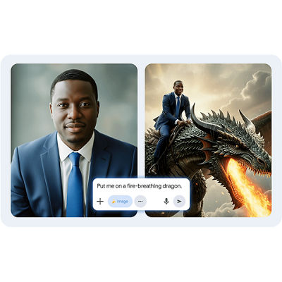 - Los resultados son para fines ilustrativos y pueden variar. Se requiere internet. Funciona con subidas compatibles. Disponible para usuarios de 18 años o más. Crea responsablemente. Consulta policies.google.com/terms/generative-ai/use-policy .